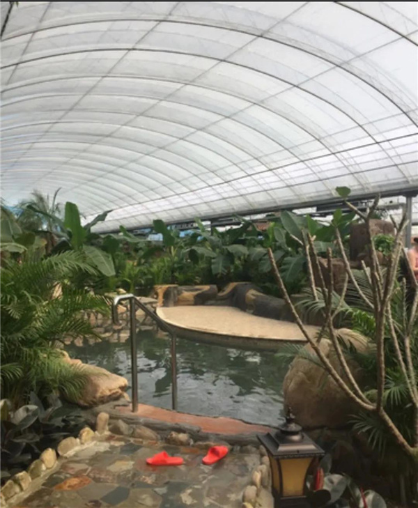 溫泉內(nèi)各種功能性泡池,包涵游泳池,大型漂流河,按摩池,兒童戲水池等20余個(gè),室外泡池3個(gè),大型豪華游泳池,海南風(fēng)情的綠色植物覆蓋的超級(jí)氧吧,空氣清新,香蕉樹(shù),荔枝,芒果等等,水果樹(shù)科普展示,一年四季如畫(huà),小橋流水,詩(shī)情畫(huà)意的浪漫生活品味,熱炕可同時(shí)容納200人。