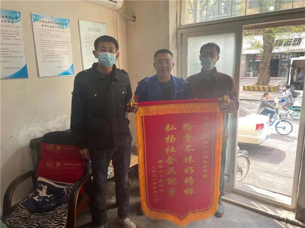 5月3日一早,高先生再次來(lái)到297站務(wù)室,一直等到李秀明跑車(chē)回到站務(wù)室后,將自己特意制作的錦旗交到他手中,再次表達(dá)自己對(duì)這位好心駕駛員的誠(chéng)摯謝意。