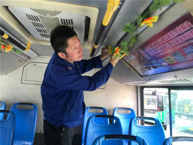在國慶節(jié)即將到來之際,267路共產(chǎn)黨員駕駛員陳旭用拉花、條幅等小飾品精心裝扮自己的車廂,使整個車廂洋溢著喜慶溫馨的節(jié)日氛圍,受到了乘客們紛紛稱贊。陳旭表示,過節(jié)了,就想給乘客營造一個溫馨的乘車環(huán)境,讓乘客乘車時感到節(jié)日的喜慶,使乘客在乘車時有一個好的心情。