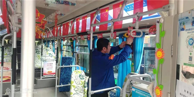 國慶節(jié)臨近,客運集團所屬各車隊積極裝扮公交車廂,為市民乘客營造喜慶、祥和的節(jié)日氛圍。