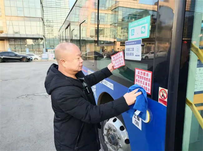 二分公司駕駛員檢查車內安全設備,為乘客提供安全舒適的乘車環(huán)境。