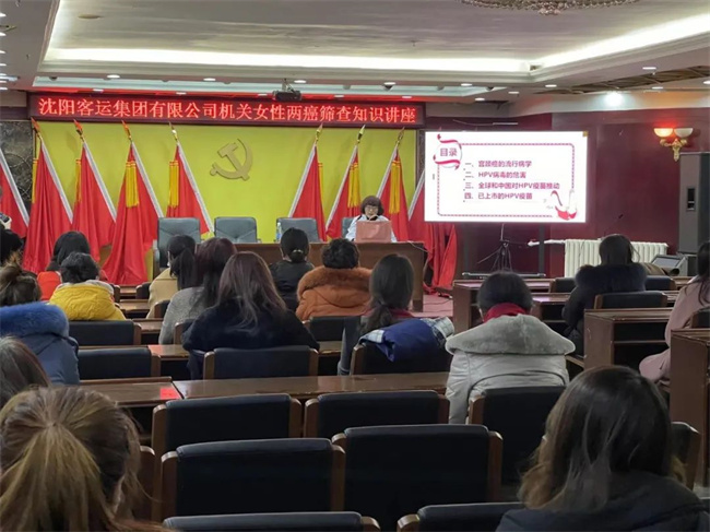 講座邀請(qǐng)沈陽(yáng)鐵西疾控疫苗預(yù)防接種中心主任劉月主講。劉主任通過病例分析及圖片演示的形式向廣大女職工認(rèn)真普及了兩癌的相關(guān)健康知識(shí)及預(yù)防措施,呼吁女職工關(guān)愛自身健康,并對(duì)女職工提出的問題一一作了耐心的解答。