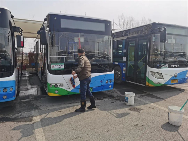 3月21日和23日,各車隊(duì)駕駛員提早到達(dá)車隊(duì),對(duì)車輛進(jìn)行清潔工作,并對(duì)車廂內(nèi)的每個(gè)角落進(jìn)行消毒,特別是對(duì)乘客所能接觸到的扶手,座椅縫隙,上下車門(mén),車窗開(kāi)關(guān)把手處進(jìn)行了仔細(xì)擦拭,做到全車消殺無(wú)死角、全覆蓋。同時(shí),車隊(duì)管理技術(shù)人員對(duì)車輛進(jìn)行嚴(yán)格檢查,確保車輛技術(shù)狀況良好,保障市民安全出行。