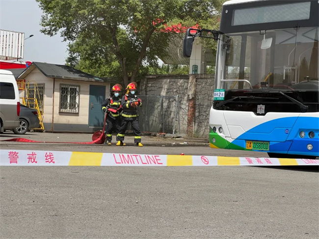 演練從火災的基本常識培訓開始,在教官的講解帶領下,進行了模擬公交車起火、報警、滅火等內(nèi)容。在模擬公交車起火的現(xiàn)場,針對車輛撤離、人員疏散、救護救援、引導消防人員到達起火點等內(nèi)容進行了實地演練。在模擬站區(qū)內(nèi)食堂起火時,教官針對液化氣罐、油鍋等危險品詳細講解了防火、滅火的各個環(huán)解。
