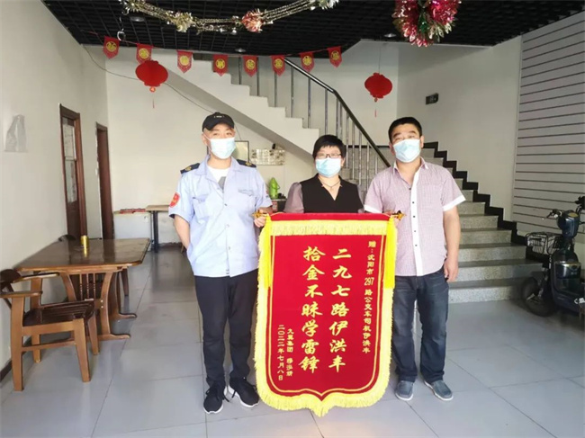 當(dāng)穆女士接過(guò)伊洪豐手中的項(xiàng)鏈時(shí),心情十分激動(dòng),再三向伊洪豐和車隊(duì)表示感謝。伊洪豐回應(yīng)道,身為一名公交車駕駛員撿到乘客丟失的物品第一時(shí)間交到隊(duì)長(zhǎng)手中是自己的職責(zé),舉手之勞,不足掛齒。一天后,穆女士特地帶來(lái)了錦旗交到伊洪豐手中,再次向他及車隊(duì)表達(dá)自己的謝意。