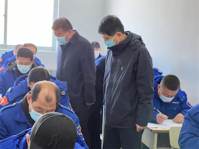 市城建交通農(nóng)林工會(huì)主席劉宗純?cè)诳瓦\(yùn)集團(tuán)黨委書記董事長孟令軍的陪同下視察考場。