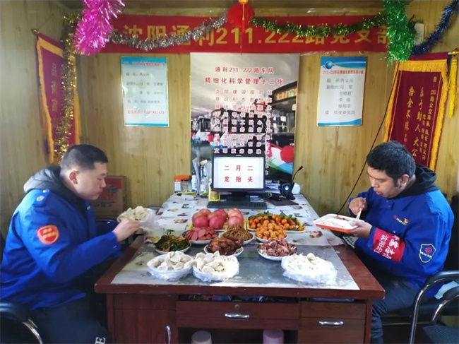 二月二,通利公司211.222路車隊為職工準備了豐盛的午餐,有豬頭肉、餃子、香腸等菜品,大家坐在一起共進午餐,其樂融融。