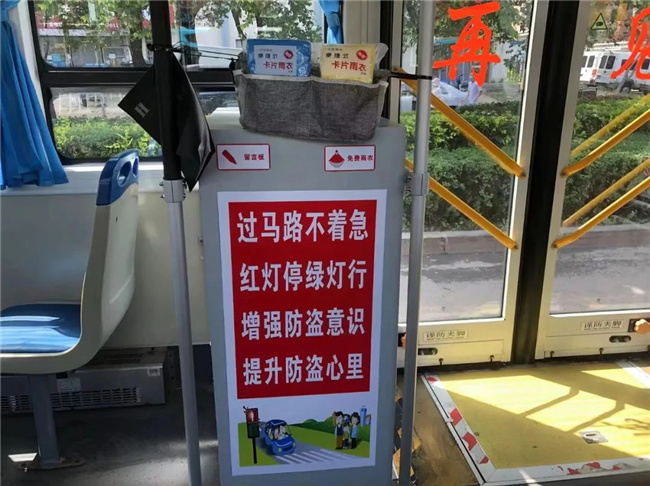 今年7月,胡影自己“裝扮”起了車廂,在業(yè)余時間購置了便民醫(yī)藥箱、一次性雨衣、手套、口罩、留言簿以及溫馨提示語。胡影說:“夏天的雨經(jīng)常猝不及防,很多人出門沒帶傘,車上備些防雨用具,可以方便乘客。”