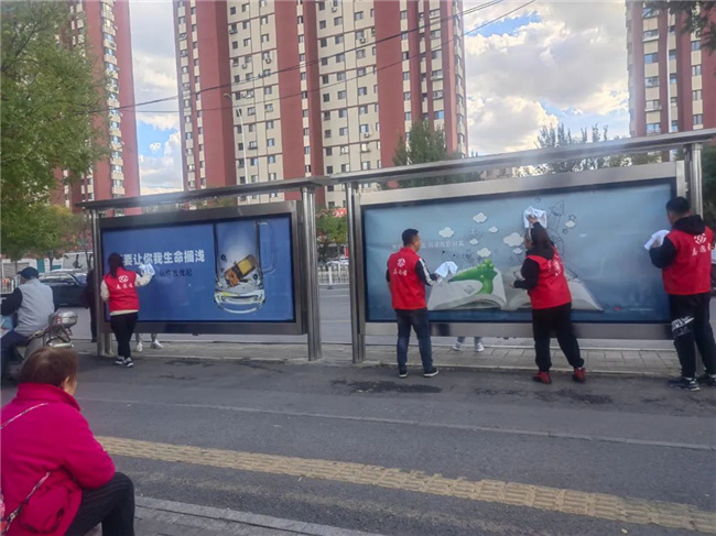 活動(dòng)中,志愿者們手拿抹布、水桶、掃帚等清潔工具,認(rèn)真對(duì)廣場(chǎng)、綠地的衛(wèi)生及周邊的隔離護(hù)欄、公交候車亭及站牌、街路牌、果皮箱等公共設(shè)施進(jìn)行徹底擦拭清潔。志愿者們充分發(fā)揚(yáng)奉獻(xiàn)精神,用實(shí)際行動(dòng)換來了廣場(chǎng)環(huán)境面貌的煥然一新,也收獲了過往市民群眾的連連稱贊。