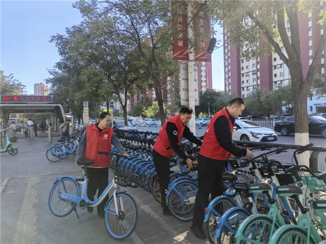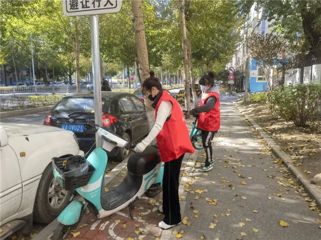 活動(dòng)中,志愿者們身穿紅馬甲,拿著清掃工具來到活動(dòng)地點(diǎn),重點(diǎn)對(duì)社區(qū)道路、綠地、樓道車庫(kù)等公共區(qū)域進(jìn)行清掃清潔,對(duì)住宅區(qū)內(nèi)生活垃圾、亂堆雜物等進(jìn)行徹底清理,對(duì)公共設(shè)施上小招貼和噴涂廣告進(jìn)行清除,擺放零散無序的共享單車。
