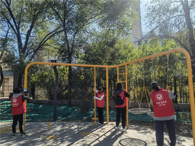 活動(dòng)中,志愿者們身穿紅馬甲,化身“志愿紅”,大家一同來到附近轄區(qū)的園區(qū)內(nèi)開展“大清掃”活動(dòng),對(duì)街道上的護(hù)欄、公交候車?yán)燃罢九频裙苍O(shè)施進(jìn)行擦拭清潔,此外,志愿者們對(duì)綠地上的垃圾進(jìn)行了統(tǒng)一清掃。