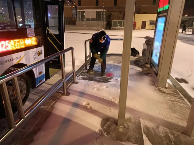 沈陽客運集團各運營單位及時啟動應急預案,各車隊管理人員與駕駛員提前到崗,清除場區(qū)及候車廊積雪,做好運營前車輛安全檢查,提前預熱車輛,保證車內(nèi)溫度達標,為乘客提供安全溫暖舒適的乘車環(huán)境。各線路隊長在發(fā)車前囑咐好每位駕駛員做到安全行車,小心慢行,注意瞭望。