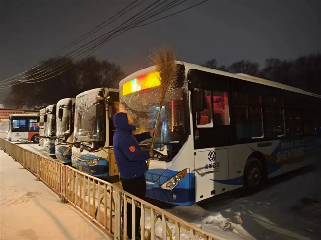 面對降溫降雪天氣,沈陽客運集團秉持全心全意為乘客服務的宗旨,確保公交車輛安全有序運營,滿足市民雪天出行需求。