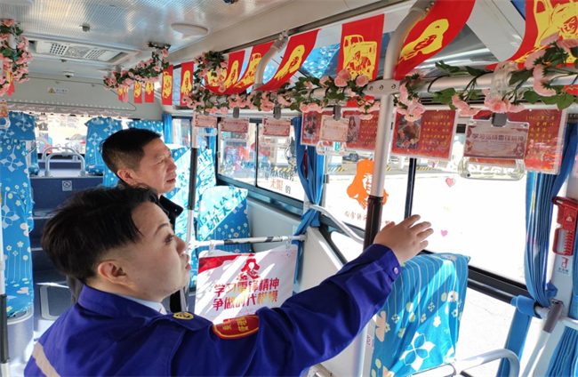 258路以“學習雷鋒精神、弘揚傳統(tǒng)美德”等主題制定車廂文化,讓車廂成為流動的課堂,打造以學習雷鋒精神為主題的車廂亮化活動,車隊以五大主題為基礎,以張貼紅色基因宣傳圖、標語等形式對車輛進行正能量宣傳,28輛單車車體全部以弘揚雷鋒精神紅色基調為載體分別制作了鮮艷的五星紅旗黨旗、雷鋒事跡說明、雷鋒粘貼等,讓雷鋒精神成為公交行業(yè)的文化品牌,讓雷鋒奉獻精神激勵世代銘刻在心,讓雷鋒精神在新時代廣泛傳播,在新時代綻放出璀璨的光芒。充分體現(xiàn)公交行業(yè)愛國愛黨、學習雷鋒、敬業(yè)勵志、敬老愛老等中心思想,極大地激發(fā)和調動了廣大駕駛員的工作熱情與干勁。