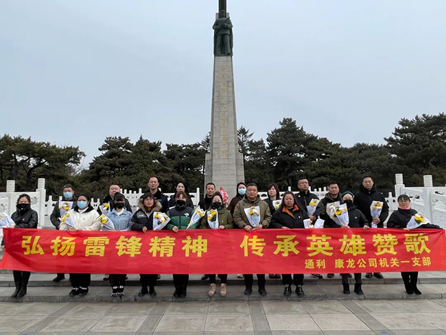 機(jī)關(guān)一支部聯(lián)合康龍支部前往沈陽抗美援朝烈士陵園敬獻(xiàn)鮮花,祭奠先輩,隨后前往龍之夢(mèng)公交樞紐為一線職工送去清潔用具。