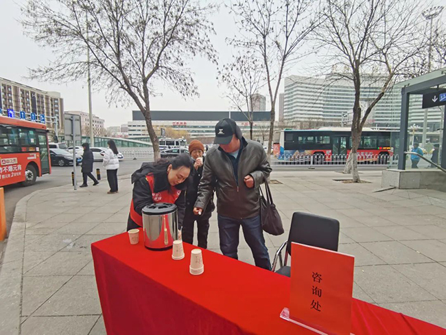 3月5日,場站公司黨員干部來到沈陽北站公交樞紐站設(shè)立咨詢處,向市民乘客提供導(dǎo)乘服務(wù),解答乘車出行問題。同時(shí),為場區(qū)的公交駕駛員和過往乘客送上了紅糖水,暖胃又暖心。