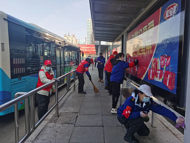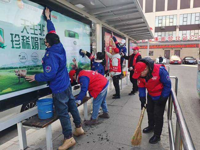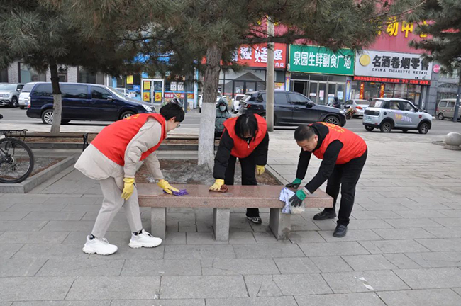 活動(dòng)中,志愿者們手拿抹布、掃帚等清潔工具,對(duì)廣場、綠地的衛(wèi)生及周邊的隔離護(hù)欄、公交候車亭及站名牌、街路名牌、果皮箱等公共設(shè)施進(jìn)行徹底擦拭清潔,并將周邊的共享單車擺放整齊。志愿者們充分發(fā)揚(yáng)“不怕臟、不怕累”的奉獻(xiàn)精神,用實(shí)際行動(dòng)換來了廣場環(huán)境面貌的煥然一新,也收獲了過往市民群眾的連連稱贊。