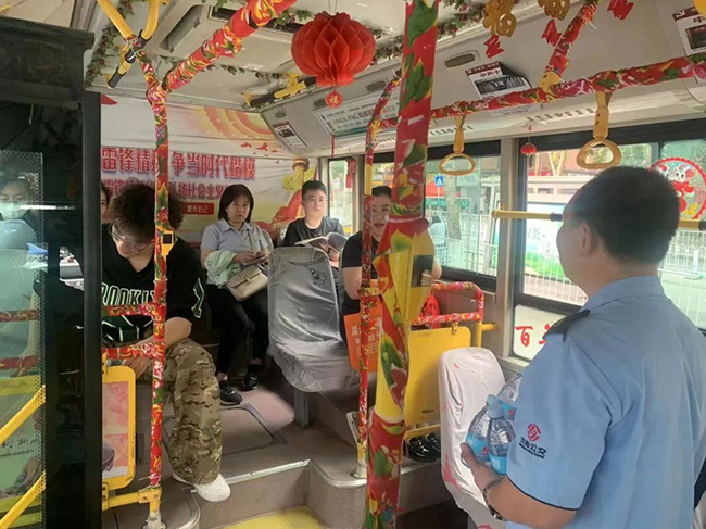 高考前一天,沈蘇公司車隊在車內(nèi)張貼鼓勵考生的條幅、裝飾一些溫馨的圖案。高考當(dāng)天,324路車隊派出一輛公交車,為第三十中學(xué)考點的學(xué)生及家長提供休息場所。