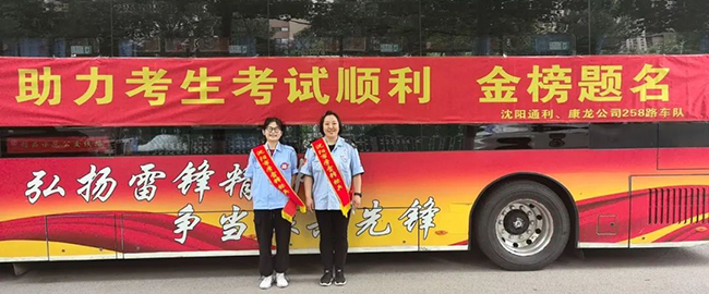 高考期間,一、二分公司王樹祥勞模黨員志愿者服務(wù)隊所在的224路車隊1129號車、沈陽市精品示范線路158路車隊0452號車變身“愛心助考車”。