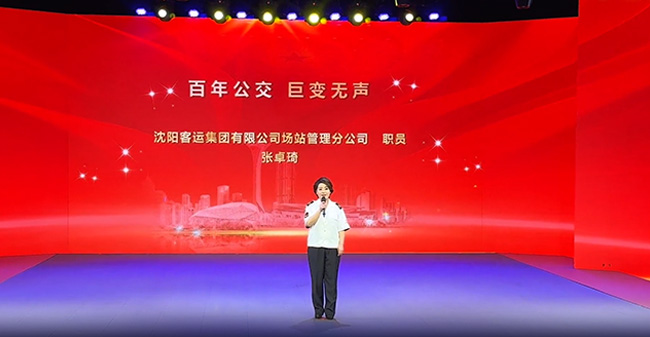 6月26日,主題演講決賽在沈陽廣播電視臺演播廳舉辦。張卓琦以“百年公交 巨變無聲”為主題,通過講述自己的乘車經(jīng)歷和參觀感悟,動情地描繪了沈陽公交百年來的發(fā)展變化和公交人默默奉獻(xiàn)辛勤付出的奮斗歷程,并榮獲二等獎。她的演講既有真摯的情感流露,又有激昂的言辭,深深打動了在場的每一位聽眾,展現(xiàn)了新時代公交人的風(fēng)采。