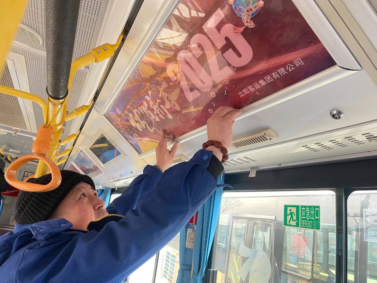與此同時,沈蘇公司車隊精心為車輛換裝,迎接新年。走進車廂,一片喜慶撲面而來,精心剪裁的紅色窗花及新春主題廣告板宛如冬日里的一團團火焰,點燃了車廂內的節(jié)日氣氛,讓車廂內充滿了濃濃的年味。乘客們紛紛表示,一上車就看到這些充滿年味的裝飾,心情也變得愉悅起來,感覺整個城市都洋溢著新春的氣息。