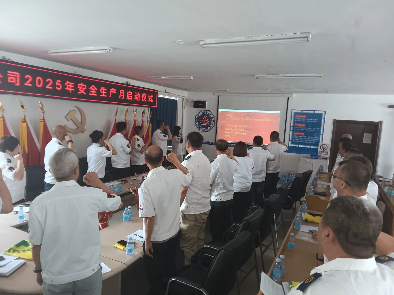 會上,黃河公司傳達(dá)了開展2025年“安全生產(chǎn)月”活動實(shí)施方案,并結(jié)合公司實(shí)際統(tǒng)籌做出相關(guān)部署與要求。公司黨委書記帶領(lǐng)大家學(xué)習(xí)了《深入學(xué)習(xí)貫徹習(xí)近平關(guān)于安全生產(chǎn)工作的重要論述》,共同觀看了警示教育片。黃河公司根據(jù)責(zé)任分工,從領(lǐng)導(dǎo)班子到車隊長層層簽署了“安全生產(chǎn)承諾書”,并舉行了授旗儀式和宣誓儀式,為公司安全工作營造了良好氛圍。