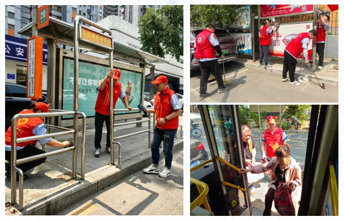 通運(yùn)公司志愿者化身清潔能手與文明向?qū)?,仔?xì)擦洗站牌、扶欄,清掃車廂每個(gè)角落,讓候車環(huán)境煥然一新;同時(shí)熱情引導(dǎo)乘客有序乘車、提拿行李。
