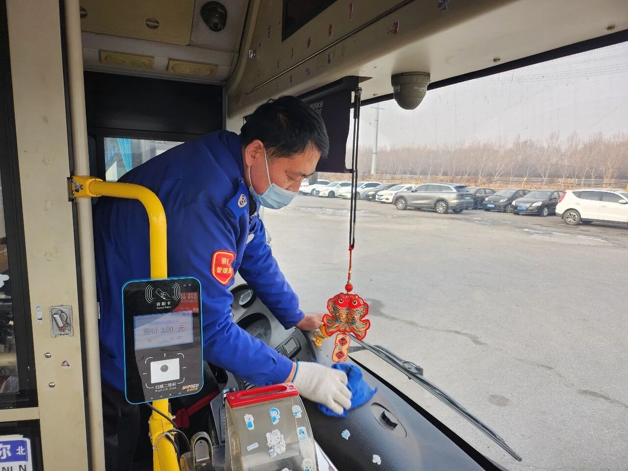 在各車隊,黨員駕駛員不僅是安全行車的保障者,更是優(yōu)質服務的排頭兵。行動開展以來,他們以身作則,每日提早到崗,認真清掃車廂每個角落,一絲不茍完成出車前的各項準備。許多黨員駕駛員主動作為,自費為車輛添置暖心棉坐墊,懸掛喜慶祥和的拉花裝飾,并在車廂內精心設置配備應急藥品、口罩、充電線等物品的“便民服務箱”。寒冬時節(jié),他們堅持提前預熱車輛,讓乘客從踏入車門的那一刻起,便能感受到融融暖意。駕駛室前,“共產黨員先鋒崗”的標識牌格外醒目,它不僅是一份榮譽,更是一份沉甸甸的責任承諾。