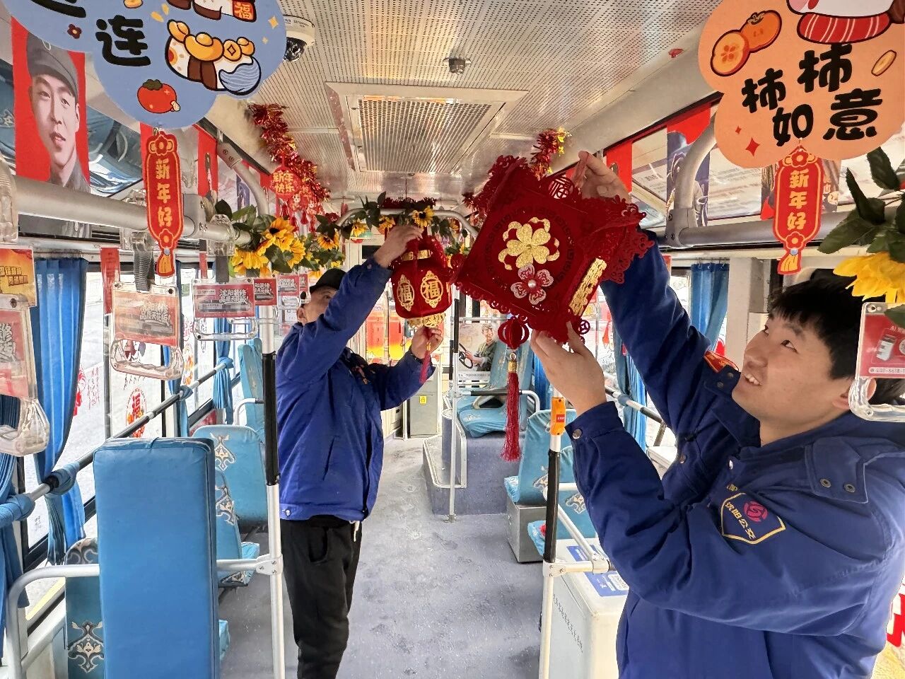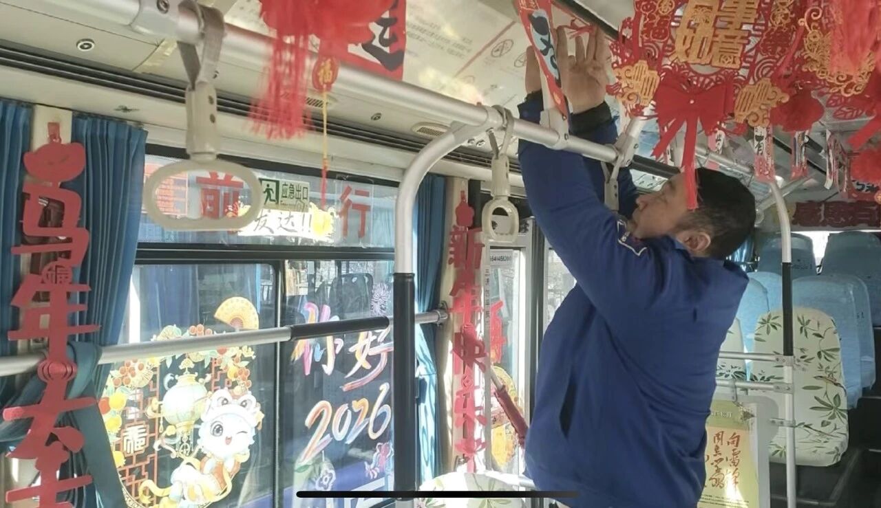 客運集團近期組織對所屬線路運營車輛進行徹底清掃與精心裝飾。車窗上貼起福字窗花,車廂內懸掛起紅彤彤的小燈籠,扶手欄上點綴著新春飾物,一輛輛公交車煥然一新。整潔明亮的車廂與喜慶祥和的裝飾交相輝映,使乘客一上車便能沉浸于歡樂的節(jié)日氛圍之中,開啟一段充滿年味的行程。