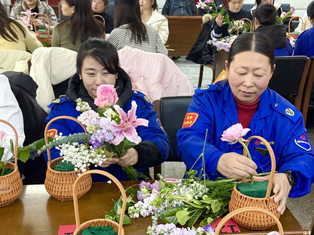隨后,活動進(jìn)入了令人期待的花藝創(chuàng)作環(huán)節(jié)。集團(tuán)工會特別邀請了專業(yè)花藝講師進(jìn)行現(xiàn)場教學(xué)。伴隨著輕柔的音樂,女職工們充分發(fā)揮想象力和創(chuàng)造力,她們或凝神構(gòu)思,或精心修剪,或熱烈討論。玫瑰的嬌艷、康乃馨的溫馨、洋桔梗的雅致……原本普通的花枝在她們的巧手修剪與創(chuàng)意組合下,變成了一籃籃錯(cuò)落有致、生機(jī)盎然的藝術(shù)品。每一件作品都蘊(yùn)含著對美的理解和對生活的熱愛,現(xiàn)場花香與笑聲交織,氣氛溫馨而熱烈。