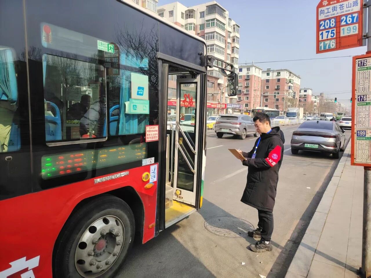 各車隊管理人員佩戴統(tǒng)一胸牌和袖標(biāo),開展常態(tài)化巡查。巡查覆蓋所有運(yùn)營時段,對車輛運(yùn)營情況進(jìn)行監(jiān)督。一方面,將“降車速、防超速”作為安全管理的重中之重,嚴(yán)格檢查車輛在路口、學(xué)校及人流密集路段的通行情況;另一方面,強(qiáng)化監(jiān)票管理,進(jìn)一步規(guī)范票款收繳、免票政策執(zhí)行等關(guān)鍵環(huán)節(jié)。