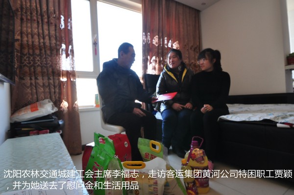 2017年1月20日,沈陽(yáng)市城建交通農(nóng)林工會(huì)主席李福志,分別慰問走訪客運(yùn)集團(tuán)公司康利巴士公司特困勞動(dòng)模范宋克香和黃河分公司特困職工賈穎,并為他們送去了慰問金和生活用品