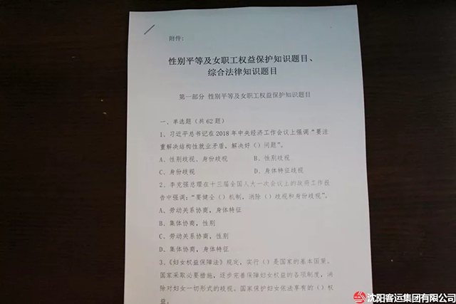 2019年3月19日下午14時,集團公司舉行了“沈陽客運集團有限公司女職工權(quán)益保護和綜合法律知識培訓(xùn)答題活動”,集團機關(guān)女職工共計20余人參加了此次答題活動。