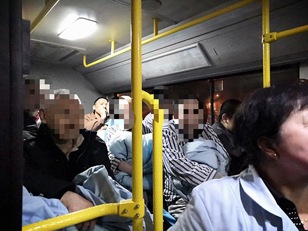 在預(yù)備車輛前往集結(jié)地點(diǎn)的途中,鑫暢公司384路車隊(duì)徐躍接到了位于線路附近沈陽(yáng)靜安國(guó)際心理康復(fù)中心的求助電話,那里有醫(yī)患人員近160余人需要緊急撤離。集團(tuán)公司臨時(shí)指揮部立即下達(dá)384路車隊(duì)就地組織執(zhí)行疏散命令。384路車隊(duì)根據(jù)現(xiàn)場(chǎng)情況,留下五輛車執(zhí)行撤離輸送任務(wù),另外兩輛車前往集結(jié)點(diǎn)待命。