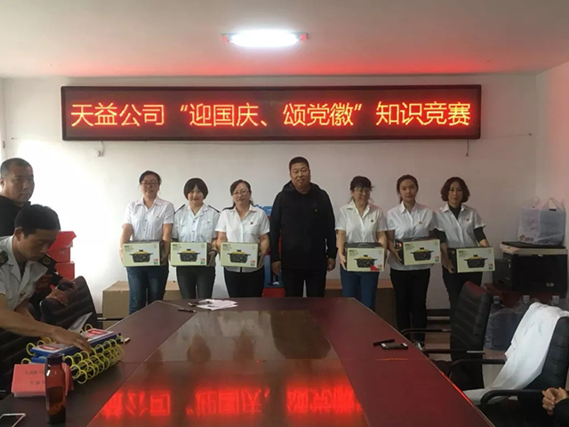 近日,天益公司黨委在公司會議室舉行“迎國慶、頌黨徽”黨建知識競賽活動,來自公司所屬11個(gè)黨支部,共33人參加競賽;公司黨委副書記、紀(jì)委書記趙立東、副經(jīng)理丁峰同志、基層各黨支部書一同參加了本次比賽。