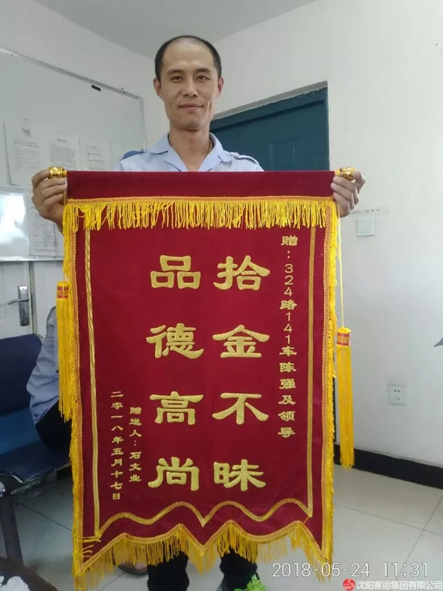 當(dāng)你發(fā)現(xiàn)路上有個(gè)錢包,你會(huì)怎么辦?是否會(huì)著急地想辦法聯(lián)系失主,還是事不關(guān)己高高掛起,又還是當(dāng)做一筆意外財(cái)?324路駕駛員陳強(qiáng)給出了自己的答案。5月4日,家住沈陽的市民不慎丟失鑰匙門卡等物品,在他心急如焚時(shí),一個(gè)駕駛員的行為讓他至今都覺得心里暖暖的。當(dāng)天上午,陳強(qiáng)師傅一如既往地駕駛遼AJ1402公交車行駛在沈陽的大街小巷,車輛到達(dá)終點(diǎn)后正準(zhǔn)備收拾車廂,發(fā)現(xiàn)有鑰匙門卡等物品遺落在座位上,陳強(qiáng)立即向車隊(duì)領(lǐng)導(dǎo)匯報(bào)此事,并交到車隊(duì)。等失主找到車隊(duì)時(shí),隊(duì)長(zhǎng)把物品歸還給失主,失主十分激動(dòng)當(dāng)時(shí)拿出現(xiàn)金表示感謝,但被陳強(qiáng)傅婉言拒絕,事后失主做了一面錦旗送到了車隊(duì)以表感謝。
