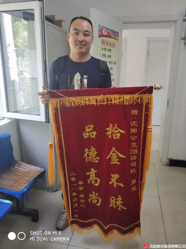 2018年6月2日上午,通利公司289路車(chē)隊(duì)辦公室來(lái)了一名男乘客,手拿錦旗滿臉笑容的找到車(chē)隊(duì)殷隊(duì)長(zhǎng),感謝車(chē)隊(duì)幫忙找回重要的失物,使物品完好無(wú)損,現(xiàn)金、證件等無(wú)一損失,感謝拾金不昧的90后289路駕駛員周健。